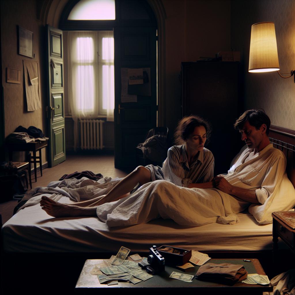 В тесной прихожей он быстро оделся, достал из кармана несколько приготовленных купюр (заранее снимал в банкомате с карточки) и положил на тумбочку. Щёлкнул выключателем и вышел за дверь.