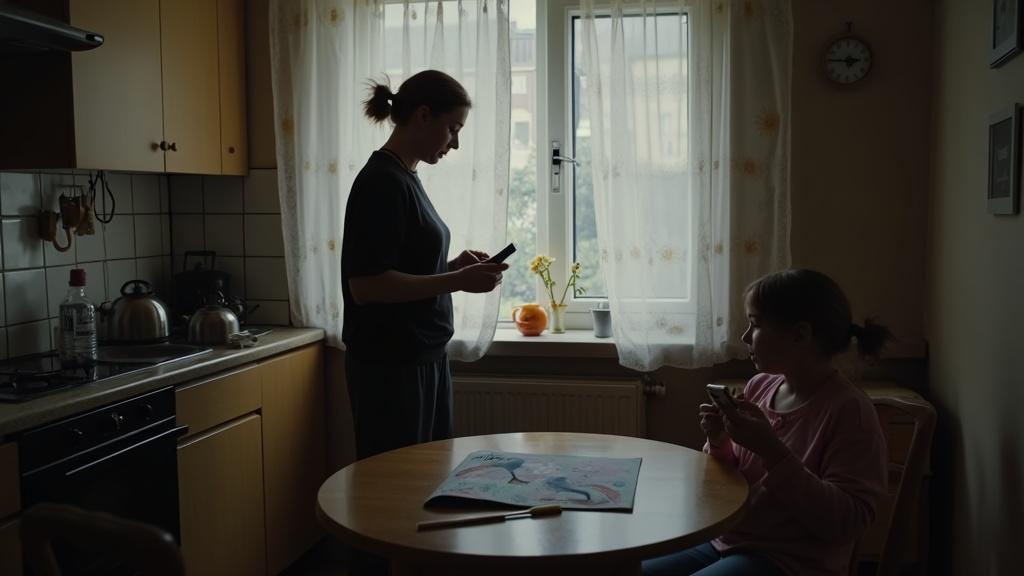 Кухня, их маленькое уютное убежище, вдруг показалась чужой. Белые занавески с ромашками, которые Катя выбирала в прошлом году, слегка колыхались от сквозняка. На столе стояла недопитая кружка чая, а рядом – рисунок Настина, где они втроём держатся за руки на фоне синего моря. Катя смотрела на этот рисунок и чувствовала, как внутри всё сжимается.