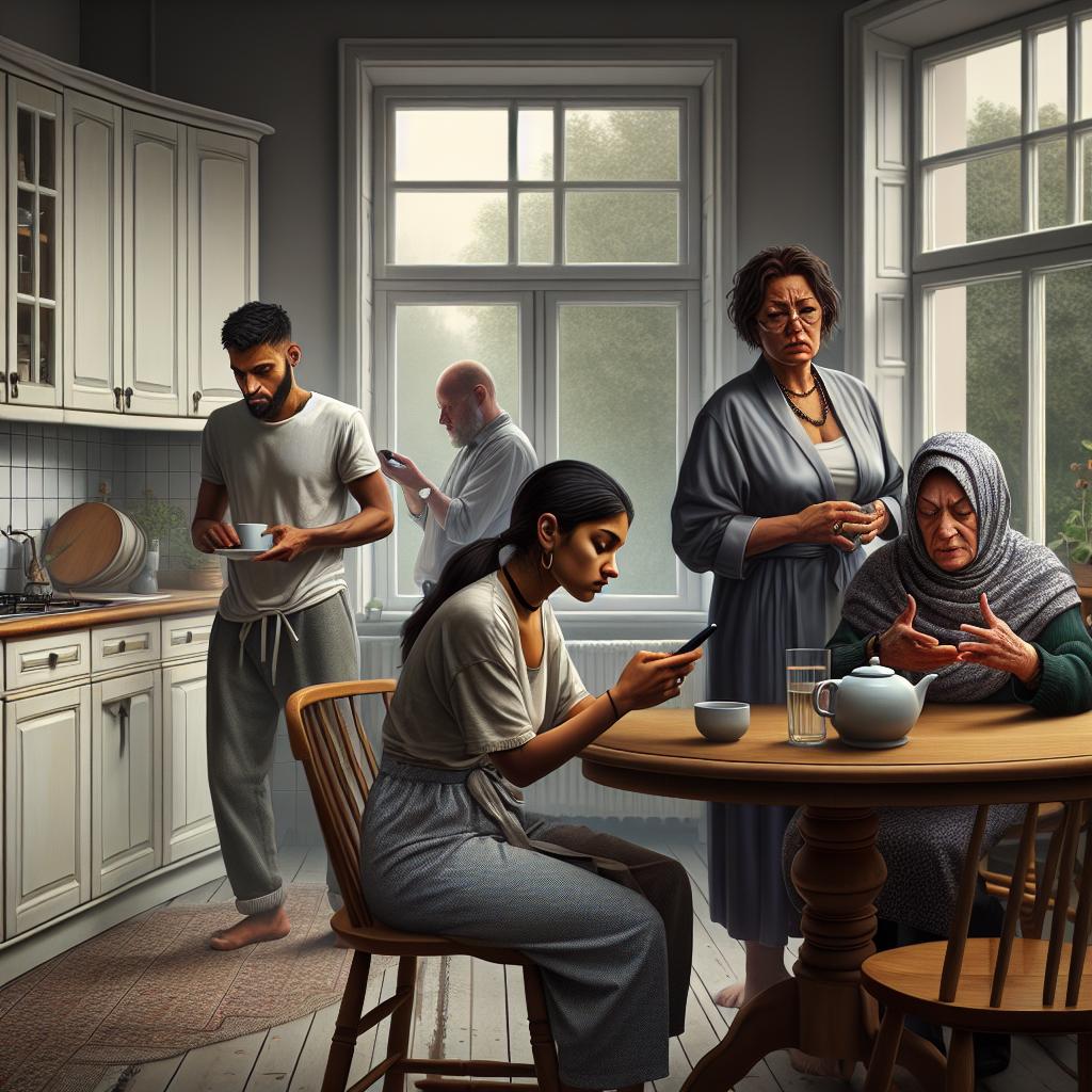 Они сели за круглый стол, который Света так любила. Лена молчала, теребя рукав своей куртки, а Галина нервно крутила кольцо на пальце. Саша принёс чайник и начал разливать чай, явно пытаясь разрядить обстановку.