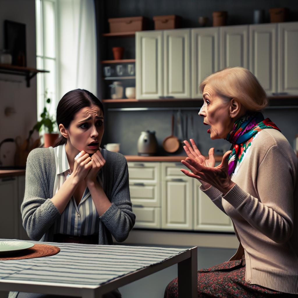 Свекровь нахмурилась, её пальцы нервно теребили край скатерти.