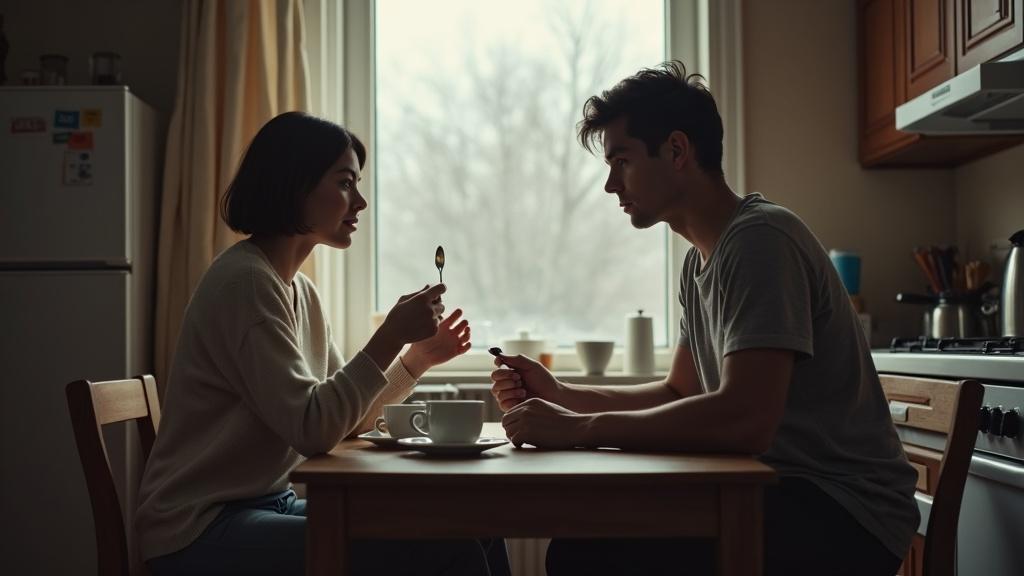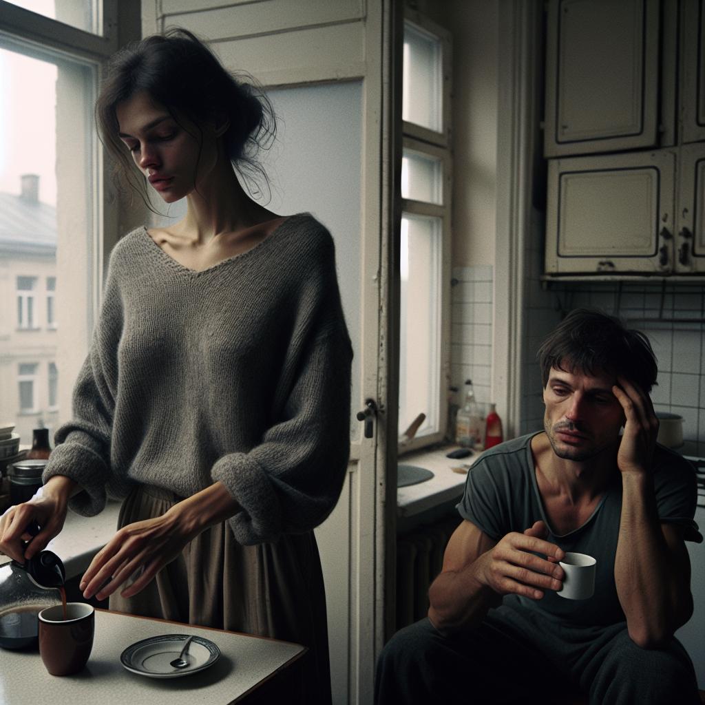 Наталья аккуратно положила ложку на стол. Утро субботы, их маленькая кухня в хрущёвке, запах свежесваренного кофе – всё это должно было быть уютным, привычным. Но слова Олега повисли в воздухе, как холодный ветер, ворвавшийся в тёплую комнату.