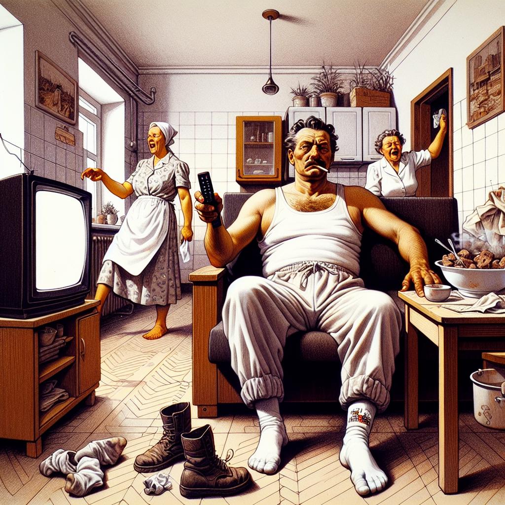 Вот так он всегда: сказал, усмехнулся и сидит довольный, будто слово его закон. С пузиком, который давно вывалился из майки, с пультом в руке, с грязными носками на столе. Хозяин жизни, чтоб ему икалось.
