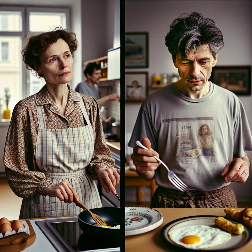 Утро было вроде бы самым обычным. В кухне пахло жареным луком — я всегда начинаю день с чего-нибудь простого, яичницы, гренок. Гриша, мой муж, любит, чтобы к девяти у него стоял полный завтрак: яйца, сыр, кофе — и обязательно что-то мясное. Я давно привыкла к его капризам: человек он вроде бы взрослый, сорок два года, но до сих пор считает, что еда на столе появляется сама собой.