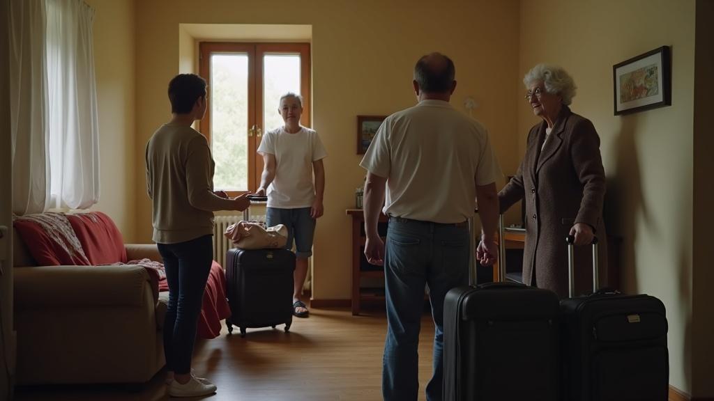 С этого всё и началось — с незначительной, казалось бы, сцены. Дверь, чемоданы, три чужих голоса в её доме. Но на самом деле — с предательства, тихого, липкого, которое проникает не сразу, а медленно, как вода сквозь трещину в стене.