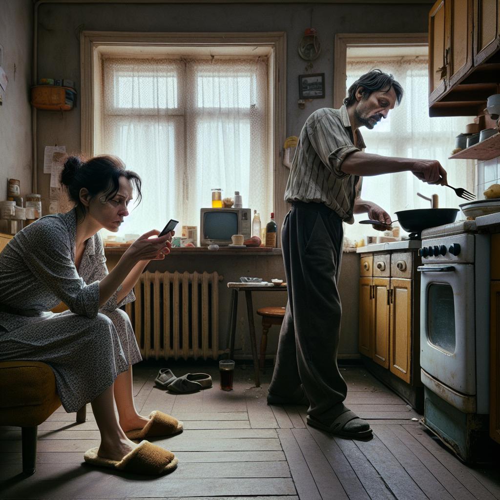 Они смотрели друг на друга, как два врага. В маленькой кухне стоял запах горелого масла и картошки. Холодильник гудел, как будто комментировал: «Всё, приплыли».