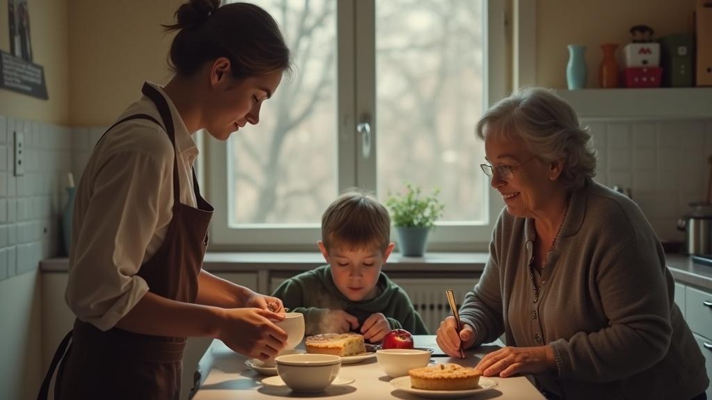 Алина аккуратно разливала чай по кружкам, стараясь не пролить ни капли. На кухне пахло корицей и свежей выпечкой — она с утра испекла яблочный пирог, любимый её пасынком Серёжей.