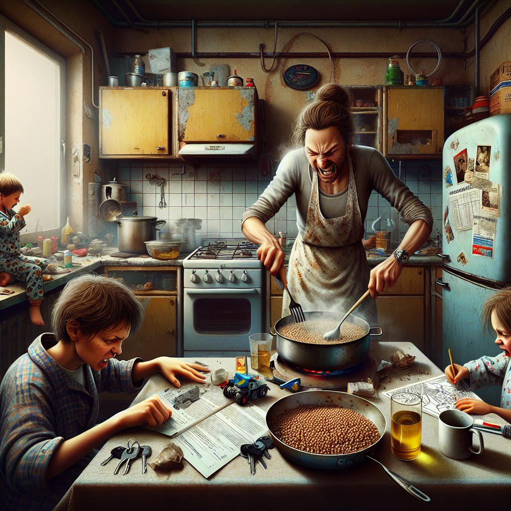 Вечер выдался душным, даже открытое окно не спасало. Ольга стояла у плиты, помешивая гречку на сковороде. Масла было в обрез — хватит разве что на то, чтобы крупа не пригорела. За спиной возились дети: старший, Ваня, собирал конструктор, а младшая, Лиза, разрисовывала уже сто раз перелистанную раскраску.