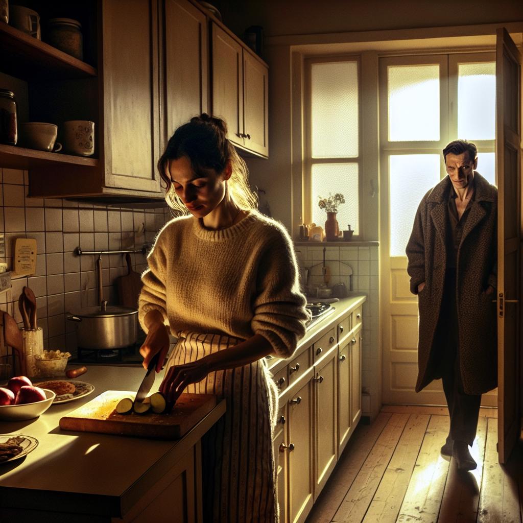 Последние лучи осеннего солнца робко пробивались сквозь кухонное окно, окрашивая столешницу в теплый золотистый цвет. Мария неспешно нарезала овощи для салата, ритмичный стук ножа по разделочной доске создавал умиротворяющую мелодию. Сегодня она решила приготовить любимое блюдо Алексея — жаркое с грибами. В доме пахло счастьем, покоем и корицей от яблочного пирога, остывающего на подоконнике.