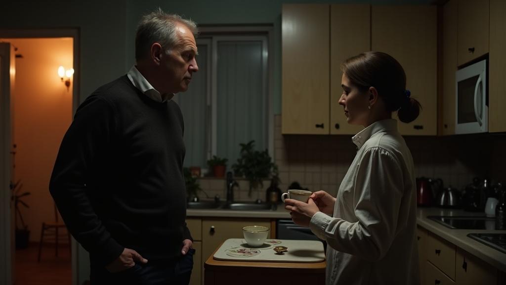Сергей отвернулся, посмотрел в окно. На улице уже стемнело, фонарь во дворе давал мягкий оранжевый свет. Снежная крошка, хрустящая, ещё не настоящая зима — всё пахло декабрём, ожиданием праздников. И одновременно — тяжёлым разговором, от которого не убежишь.