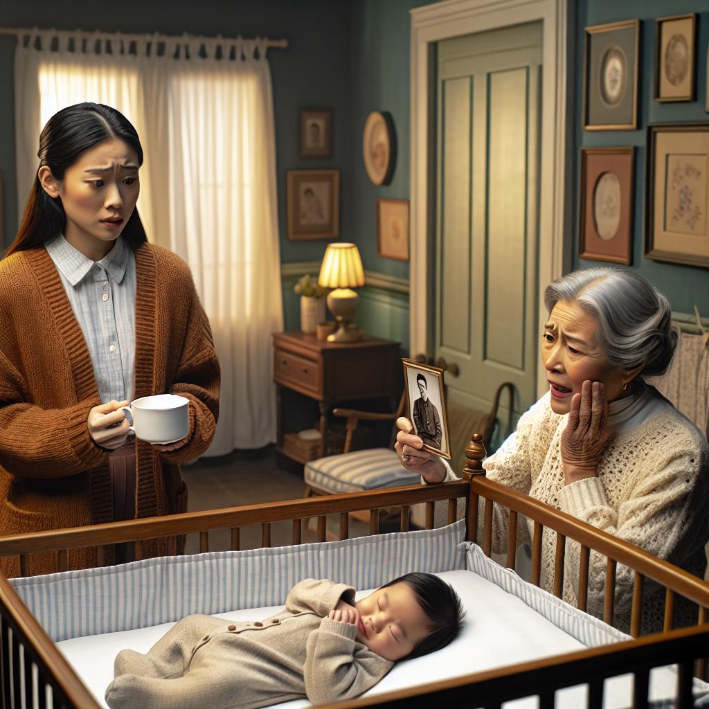 Кристина замерла в дверях детской, стараясь не расплескать чай из кружки. Свекровь сидела у кроватки, держа в одной руке старую фотографию Димы, а другой легонько поглаживая щёчку спящего Миши. Нина Сергеевна не заметила невестку — настолько была увлечена сравнением.