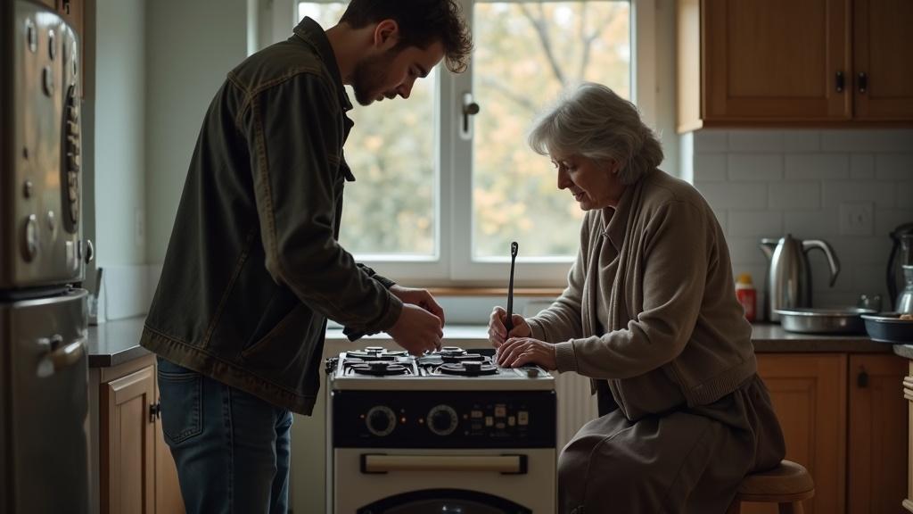 Плита сломалась вечером, когда Елена готовила ужин — конфорки перестали включаться. Пришлось вызывать мастера, и теперь он копался в её кухне уже полчаса.