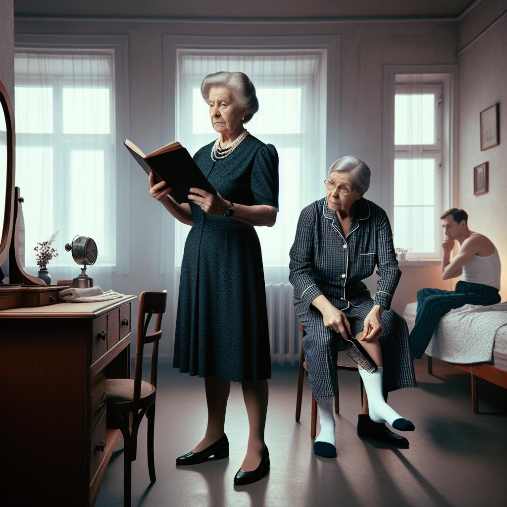 Галина Петровна вошла в комнату, не дожидаясь приглашения. На ней было тёмно-синее платье, которое она надевала только по особым случаям, волосы аккуратно уложены, на шее — жемчужные бусы, подаренные покойным свёкром на сороковую годовщину свадьбы. Она села в кресло у окна — в их спальне, в их квартире — с видом хозяйки положения.