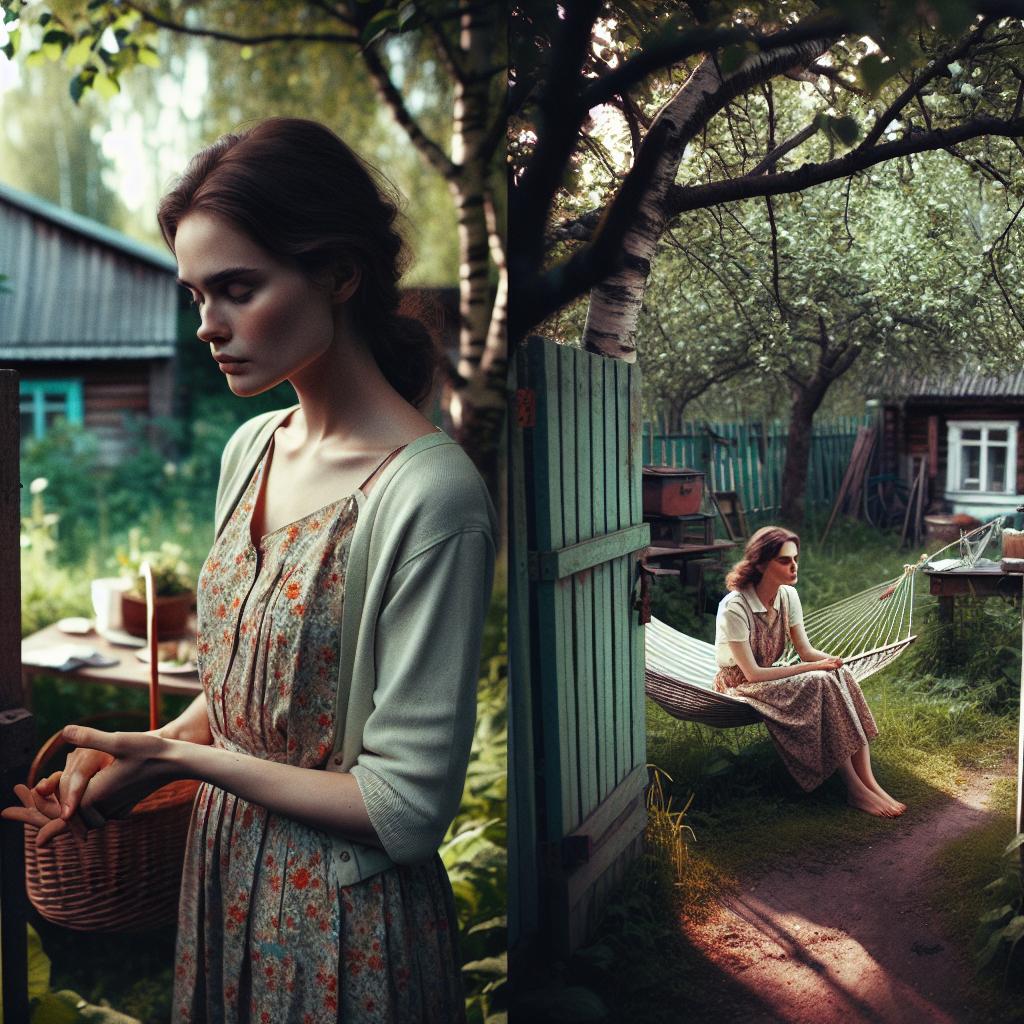 Выпив кофе, она надела свой цветастый дачный сарафан и пошла в сад, где в тени яблонь висел её любимый гамак. Всё, теперь над ней покачивались зелёные ветви с промельками синего неба, пели птицы и витал слабый ветерок. Марина задремала. А проснулась от слабого шороха чьих-то шагов.