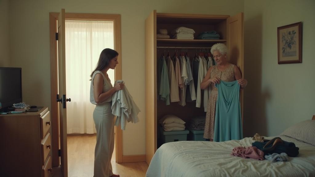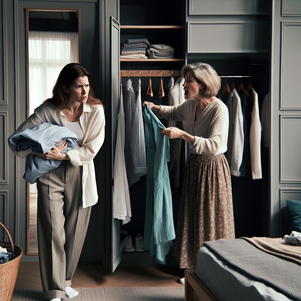 Наталья замерла на пороге детской, прижав к груди стопку выглаженного белья. Картина, открывшаяся перед ней, на секунду остановила дыхание. Свекровь стояла у открытого шкафа Наташи и методично перекладывала её вещи из одной стопки в другую. Не просто смотрела — перебирала руками её платья, свитера, джинсы, откладывая одни в сторону, другие складывая обратно. На кровати уже лежала небольшая горка отобранных вещей.