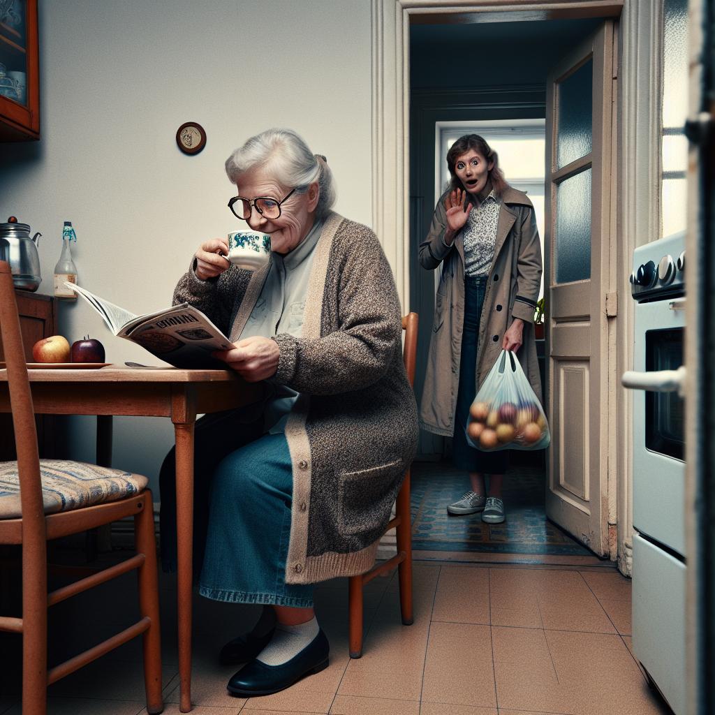 Из коридора послышались шаги. В кухню вошёл Андрей. Он увидел рассыпанные яблоки, побледневшее лицо жены и довольную физиономию матери — и всё понял.