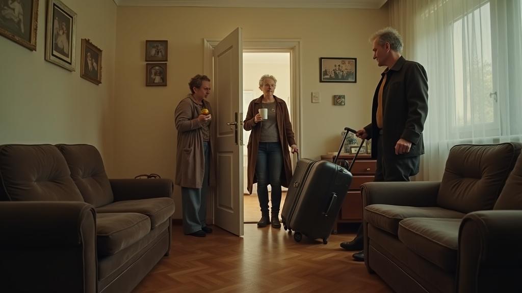 Людмила влетела в квартиру первой, даже не сняв уличных ботинок. За ней, тяжело дыша и опираясь на палочку, которой у неё вчера ещё не было, ковыляла свекровь — Зинаида Павловна. А замыкал процессию Антон, молчаливый, с опущенной головой, волоча за собой два огромных чемодана.