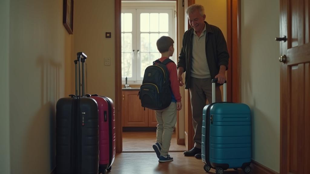 Два огромных чемодана на колёсах — один тёмно-синий, другой ярко-малиновый. Такие чемоданы берут не на десять дней. В такие упаковывают всю жизнь, когда планируют остаться надолго. И последним штрихом стала дорожная сумка самого Григория у его ног. Аккуратно собранная, готовая к отъезду.