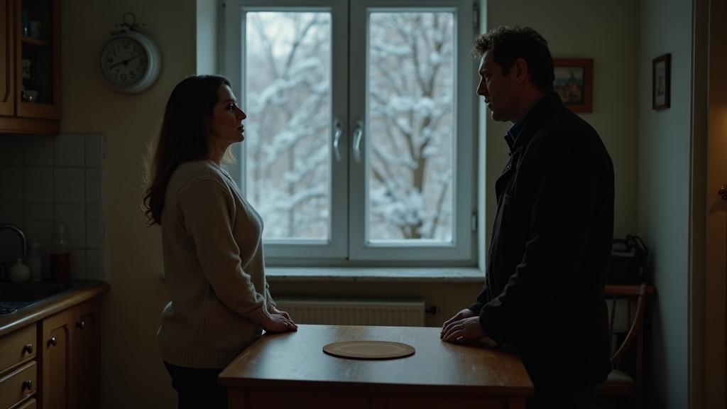 В кухне повисла такая тишина, что стало слышно, как тикают старые настенные часы – те самые, которые мы когда-то купили вместе на блошином рынке в Измайлово. Сергей стоял в дверях, всё ещё в куртке, с каплями растаявшего снега на волосах. Его лицо медленно наливалось краской – от удивления к злости, от злости к чему-то, что я не могла точно определить.