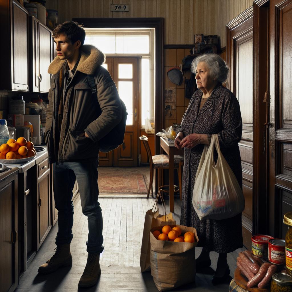 Наталья Петровна, высокая женщина с аккуратно уложенными седыми волосами и строгим взглядом, даже не повернулась к сыну полностью. Она продолжала раскладывать на кухонном столе пакеты с продуктами, которые привезла из своего района – мандарины, копчёную колбасу, банку красной икры. Всё это было куплено специально для новогоднего стола, который, по её планам, должен был пройти в их с Сергеем доме. Но теперь, судя по тону, планы рушились.