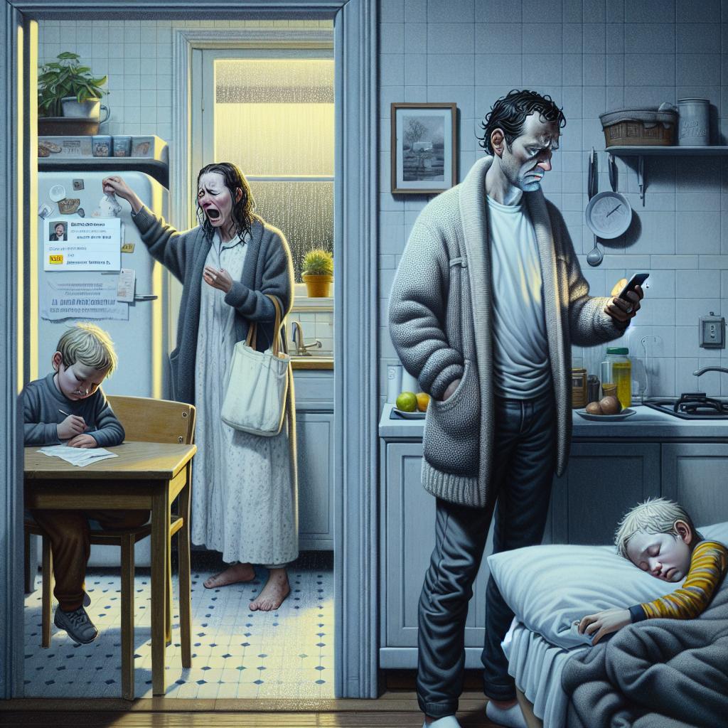 Она встала и пошла в комнату. Артём пошёл следом. На кровати спал Миша – худенький, с тёмными кругами под глазами, прижимая к себе старого плюшевого зайца. Рядом на тумбочке стояла коробка с лекарствами и листок с расписанием приёма.