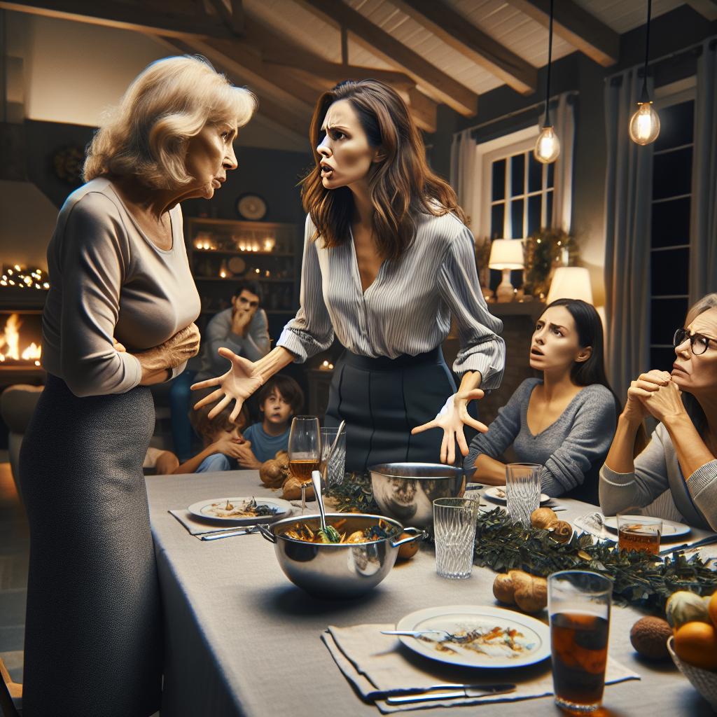 За столом повисла тишина такая густая, что слышно было, как шипит бенгальский огонь на ёлке. Двенадцать человек – родственники со стороны мужа, пара старых друзей семьи и их взрослые дети – сидели, как будто кто-то выключил звук в комнате. Даже дети перестали шуршать конфетными фантиками.