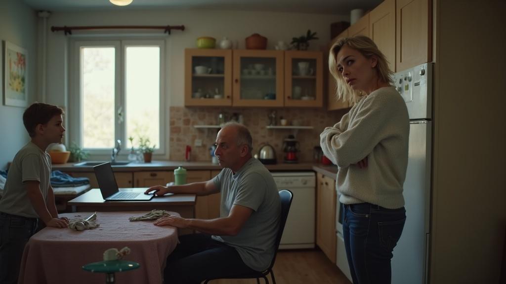 Муж сидел за столом, уткнувшись в ноутбук.