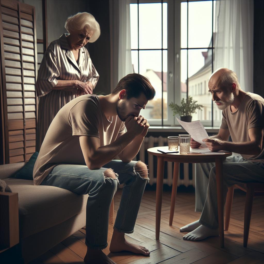 Дверь хлопнула. Марина и Андрей остались одни в гулкой тишине. Марина села обратно на диван, обхватила голову руками. Всё рушилось. Квартира, планы, будущее.