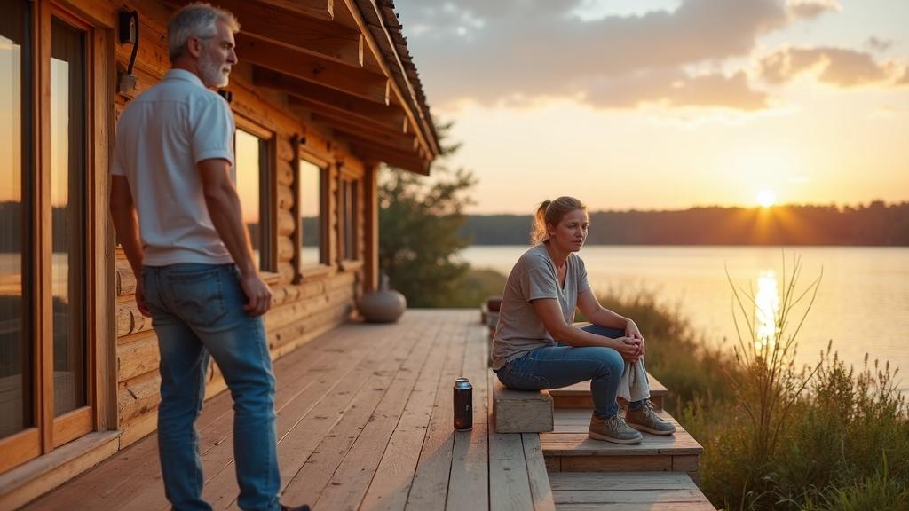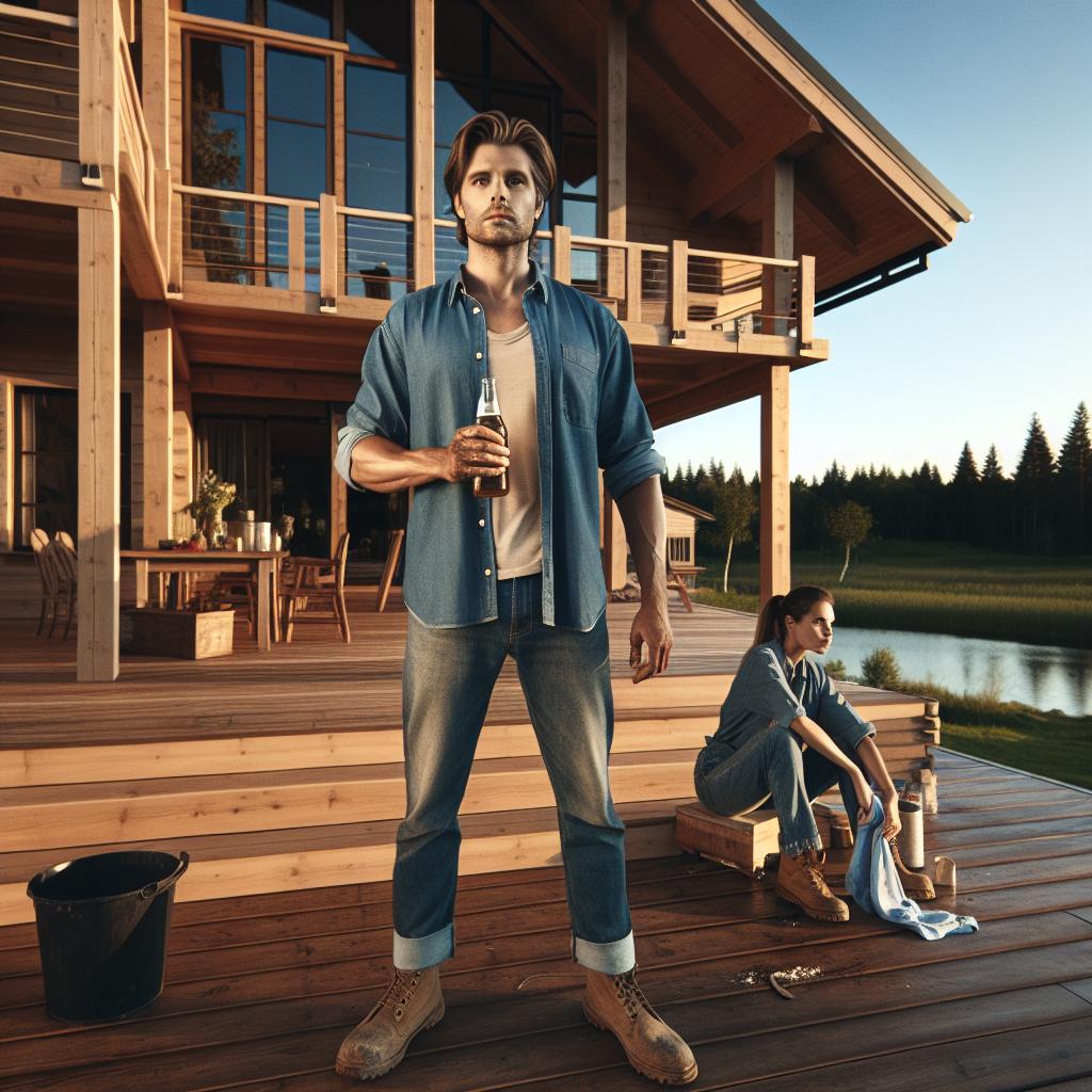 Олег стоял на террасе, широко расставив ноги, и с видом помещика оглядывал окрестности. В руке — банка холодного пива, в голосе — та самодовольная интонация, от которой у Марины сводило скулы. Она сидела на ступеньках, медленно вытирая руки ветошью, перепачканной в морилке. Пахло свежим деревом, озерной тиной и дымом от соседского костра.