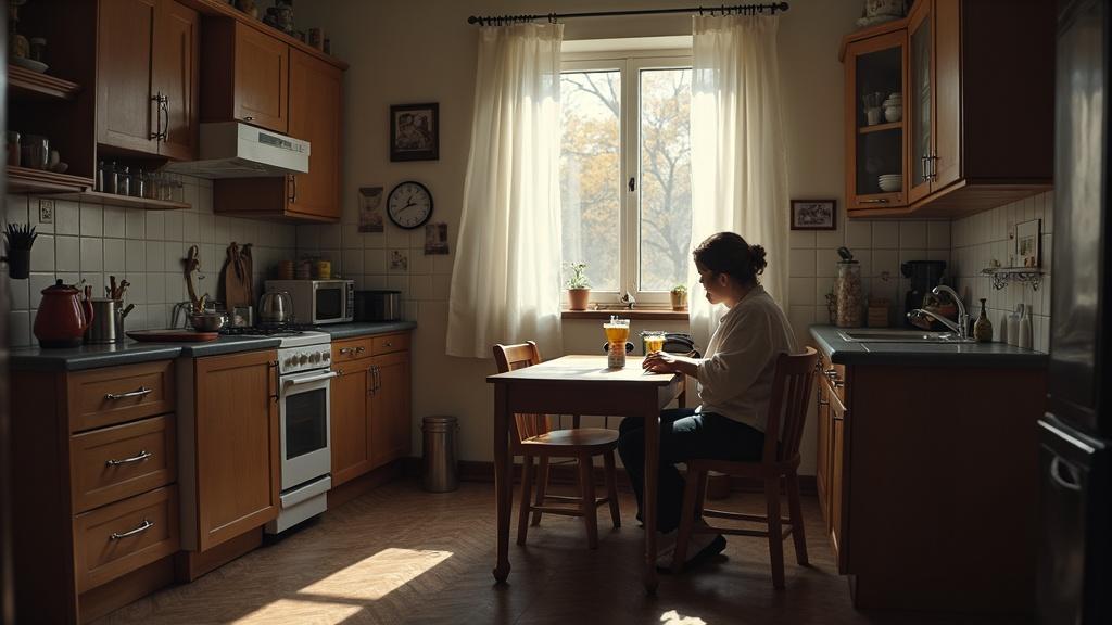 В кухне пахло пережаренным луком — резкий, сладковатый дух, который, казалось, въедался в обои. Я стояла у окна, наблюдая, как осенний ветер гоняет по двору желтую листву, и спиной чувствовала нарастающее напряжение. Оно сгущалось за моей спиной, исходя от сутулой фигуры мужа, сидевшего за столом.
