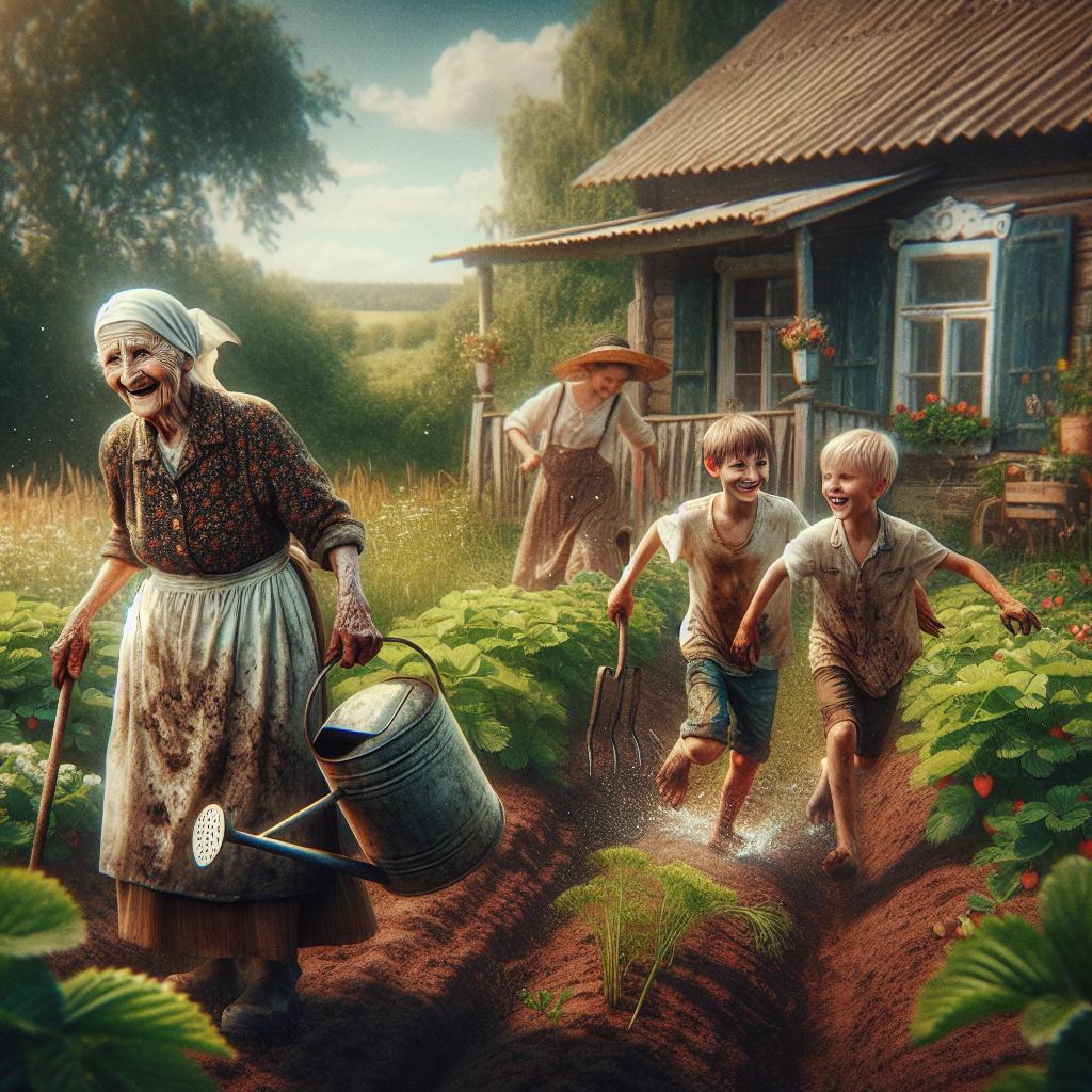 Мальчишка, чумазый, с царапиной на коленке, тащил тяжелую лейку. Следом за ним, пыхтя от усердия, семенила семилетняя Катюша, прижимая к груди пучок сорняков, в котором, к сожалению Анны Петровны, виднелась и пара стеблей моркови.