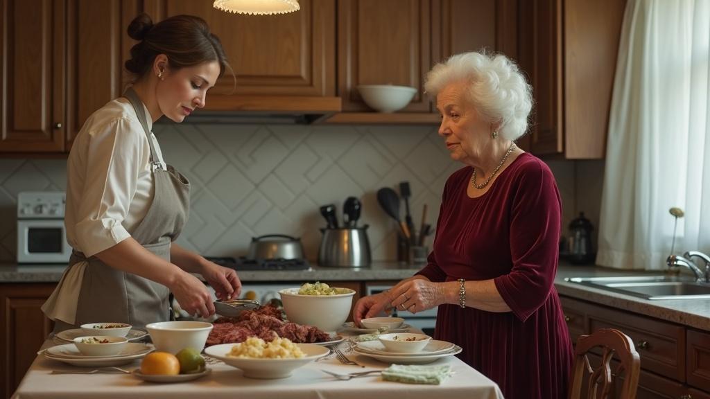 — Света! Ну где горячее? Гости ждут! — голос свекрови перекрыл гул голосов. Она восседала во главе стола в бархатном платье цвета бордо, напоминая парадный портрет из прошлого века.