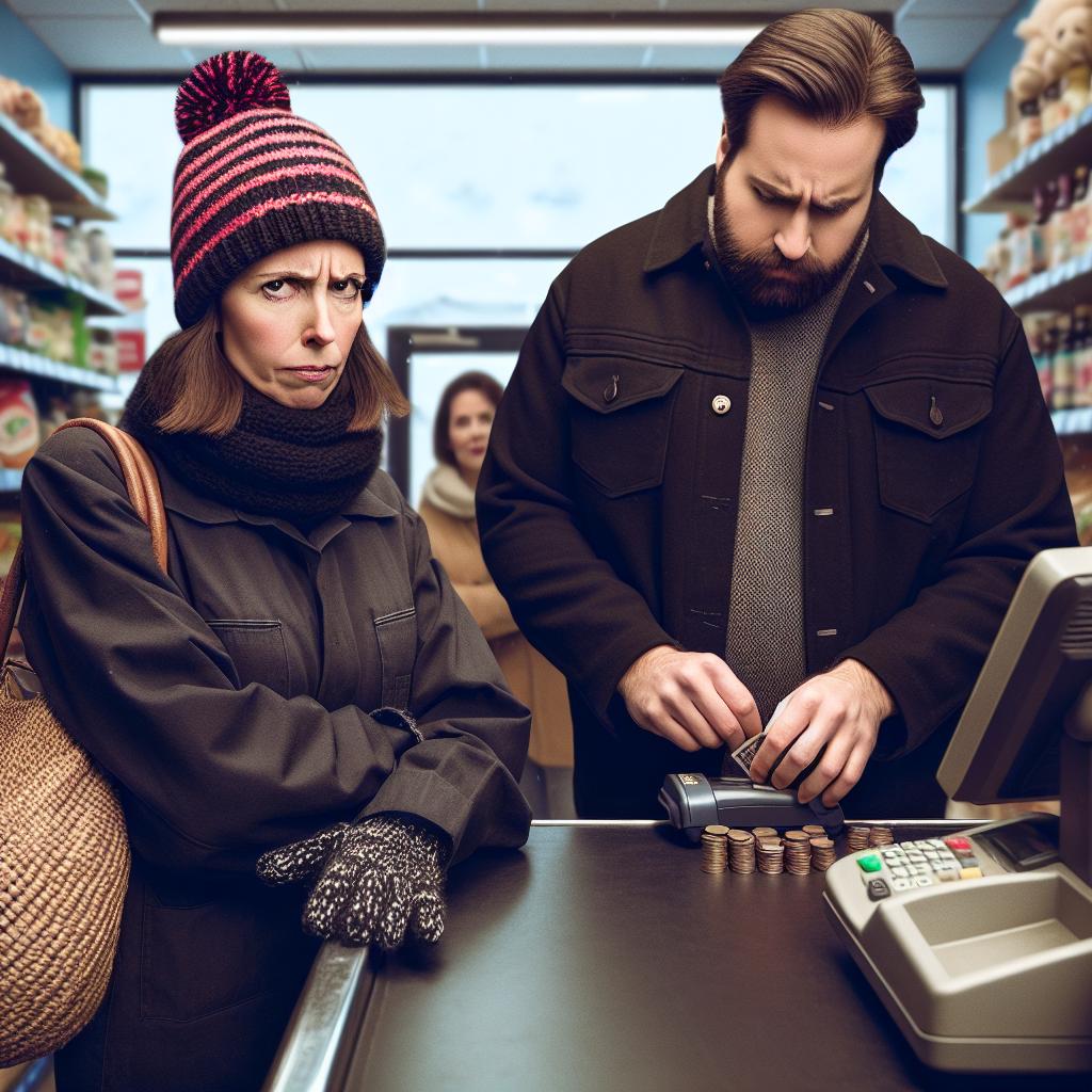 Очередь в кассу не двигалось. Внутри Галины поднималось раздражение. И шапка ещё эта… Захотелось оставить продукты и уйти поскорее отсюда, но других магазинов возле дома не было. «Сколько раз замечала, что если в очереди стоят мужчины, то это надолго. Сейчас начнёт выбирать сигареты: «Дайте мне синие с красной полоской. Нет? Тогда дайте белые с зелёной наклейкой. – Галина дурашливо изобразила про себя интонацию мужчины. – Потом будет долго искать деньги в карманах. Нет, чтобы заранее приготовить…» — вздохнула Галина.