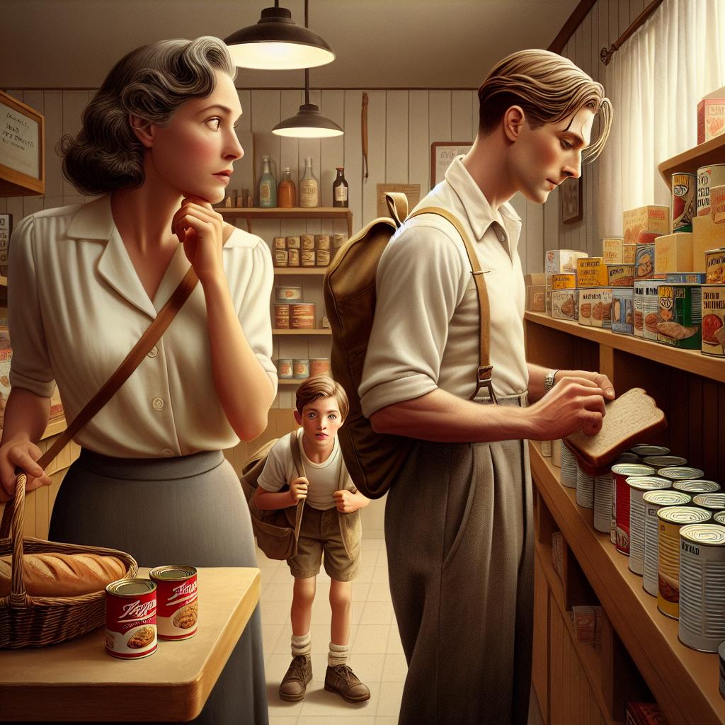 Взгляд упал на молодого мужчину, набирающего банки тушёнки, макарон и хлеба с песком. Мальчик лет пяти-шести деловито укладывал всё в рюкзак стоящий на полу.