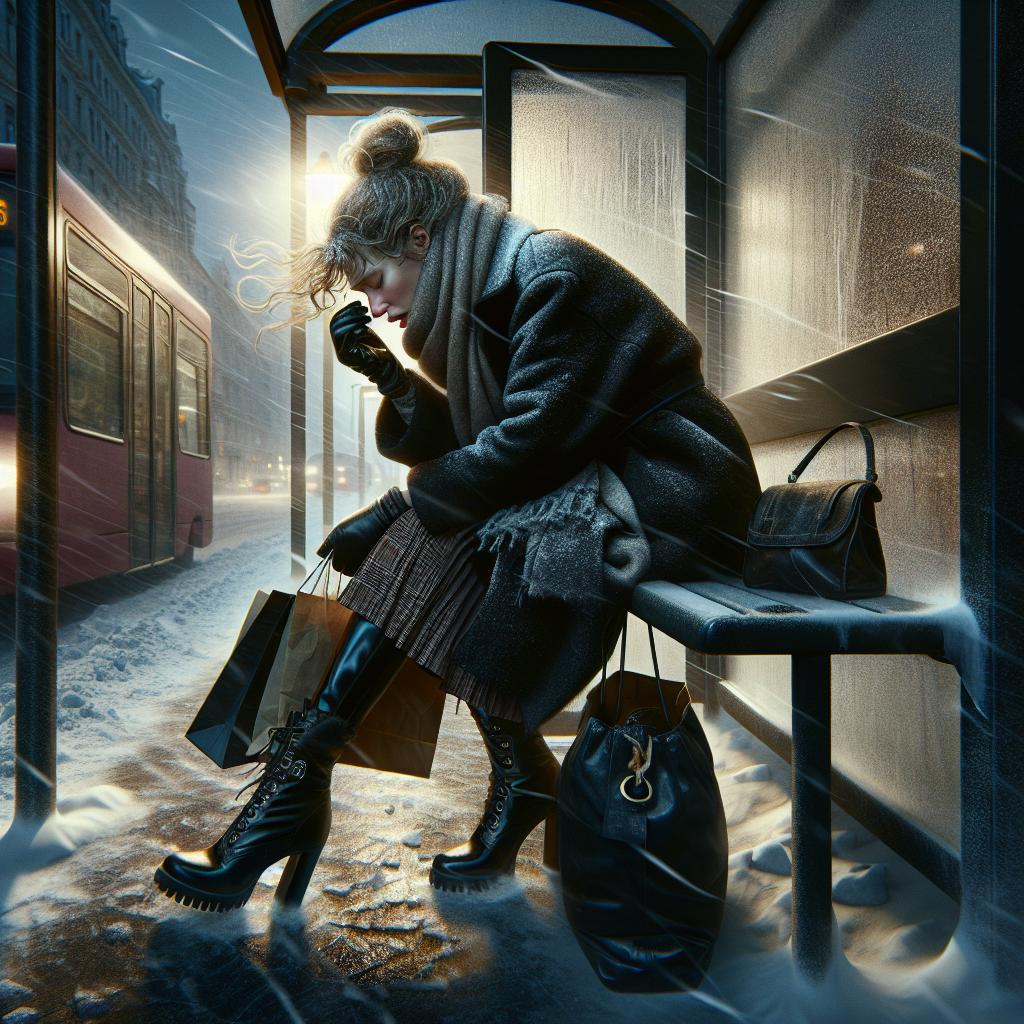 Кристина дошла до остановки и поставила на узкую скамейку тяжелые пакеты. Растёрла озябшие и затёкшие пальцы. Она присела рядом с пакетами, давая отдохнуть уставшим от напряжения ногам, сунула руки в карманы пальто. Ветер доставал её и здесь.