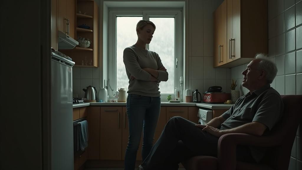 Она развернулась и вышла из кухни, оставив его одного. Сергей смотрел ей вслед, чувствуя, как в груди растёт тяжёлый ком. Дверь в спальню хлопнула, и дом погрузился в тишину, нарушаемую только стуком дождя.