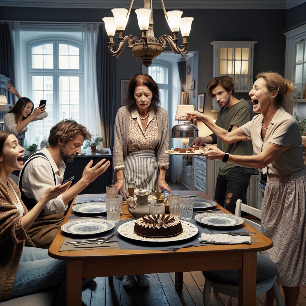 Тётя Света, младшая сестра моего мужа, сидела во главе стола, как будто это был её день рождения, а не наш с Сергеем первый большой праздник в новой квартире. Рядом с ней её муж Дима задумчиво доедал последний кусок торта, а их взрослые дочери-близняшки Лена и Катя уже тянулись к телефону, чтобы сделать ещё одно селфи на фоне нашей новой люстры.