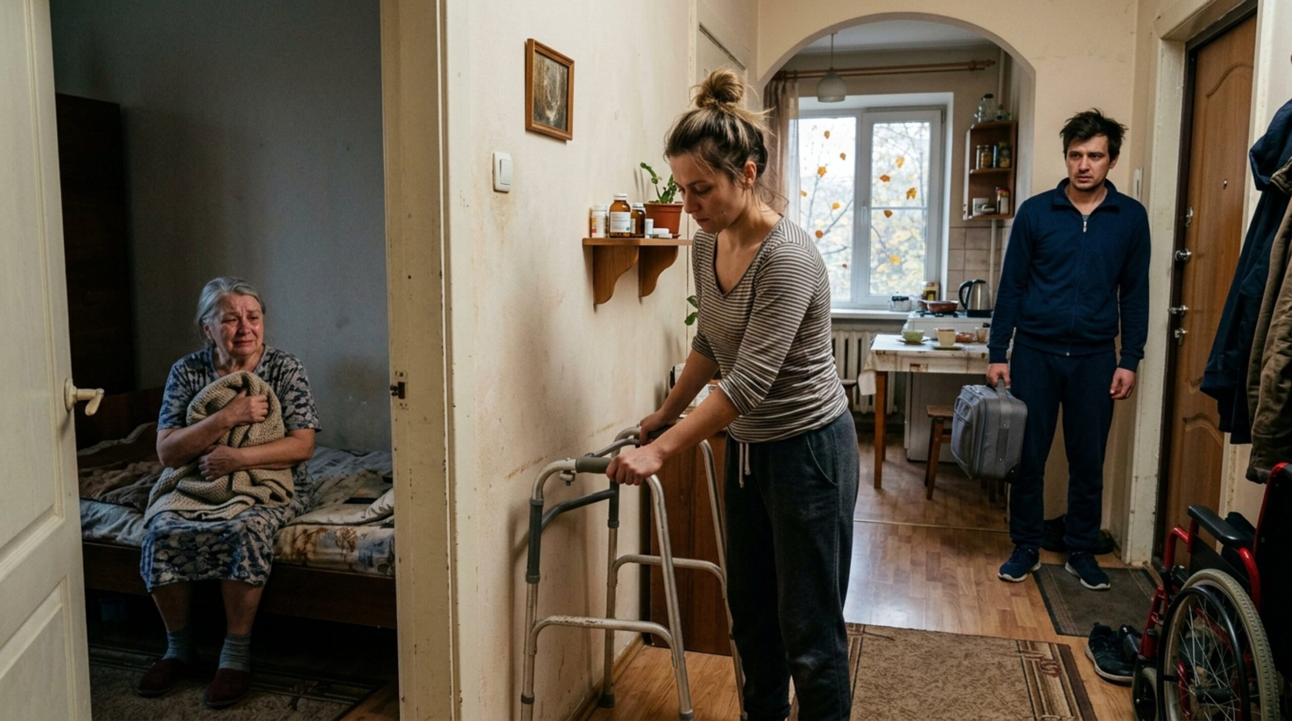 — Тарас, прошу тебя, потише, — спокойно, но твёрдо сказала Оксана, поднимая с пола ходунки и ставя их ближе к стене так, чтобы они не перекрывали проход, но оставались рядом с дверью комнаты. — Мама уснула всего полчаса назад. Сегодня ей снова делали уколы, она вымоталась. Она специально оставила их ближе — вдруг ночью понадобится встать. Ей трудно тянуться.